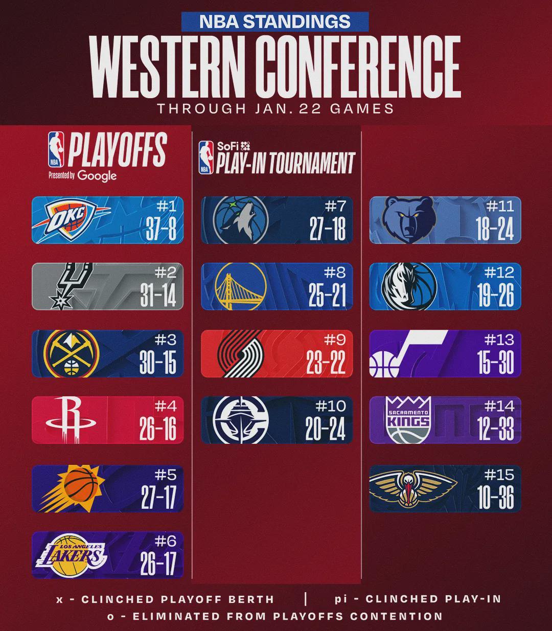 申京的合同5年1.85亿美元,2030年才能到期。最后看看最新的各队排名,你觉得火箭会交易申京吗?